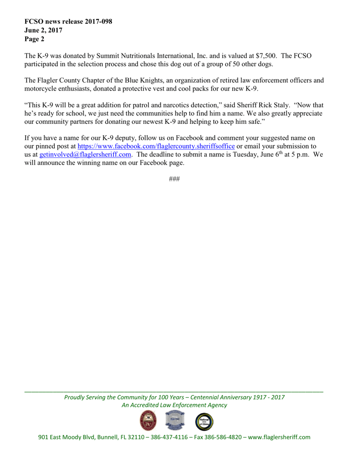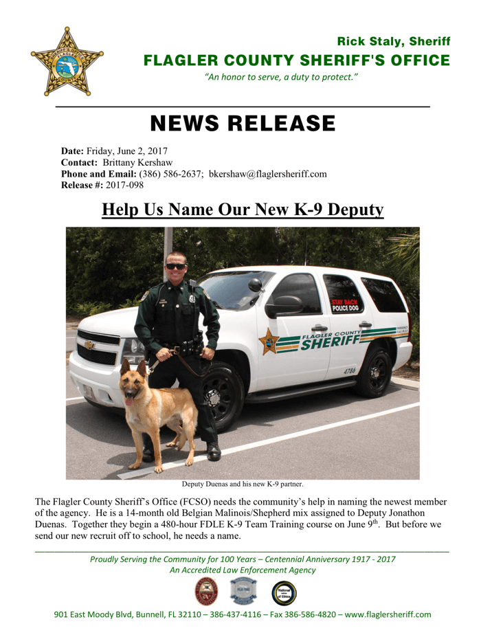 Flagler County Sheriff’s Office Introduces Its Newest K-9 Officer to the Public