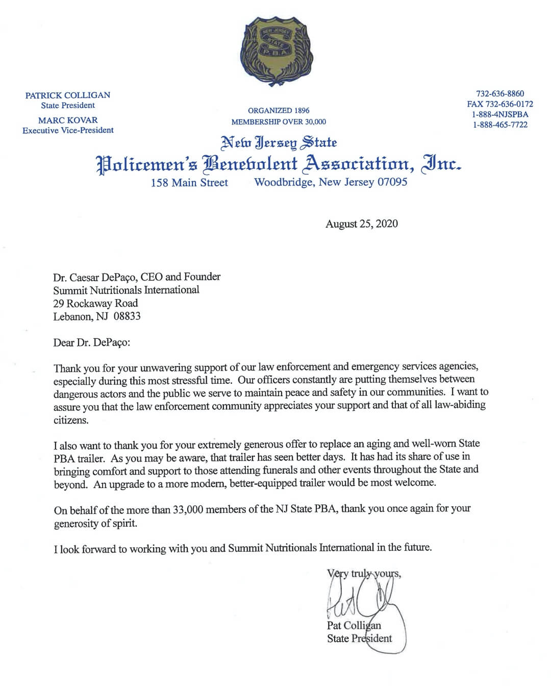 Bernardsville Law Enforcement Thanks Caesar DePaço