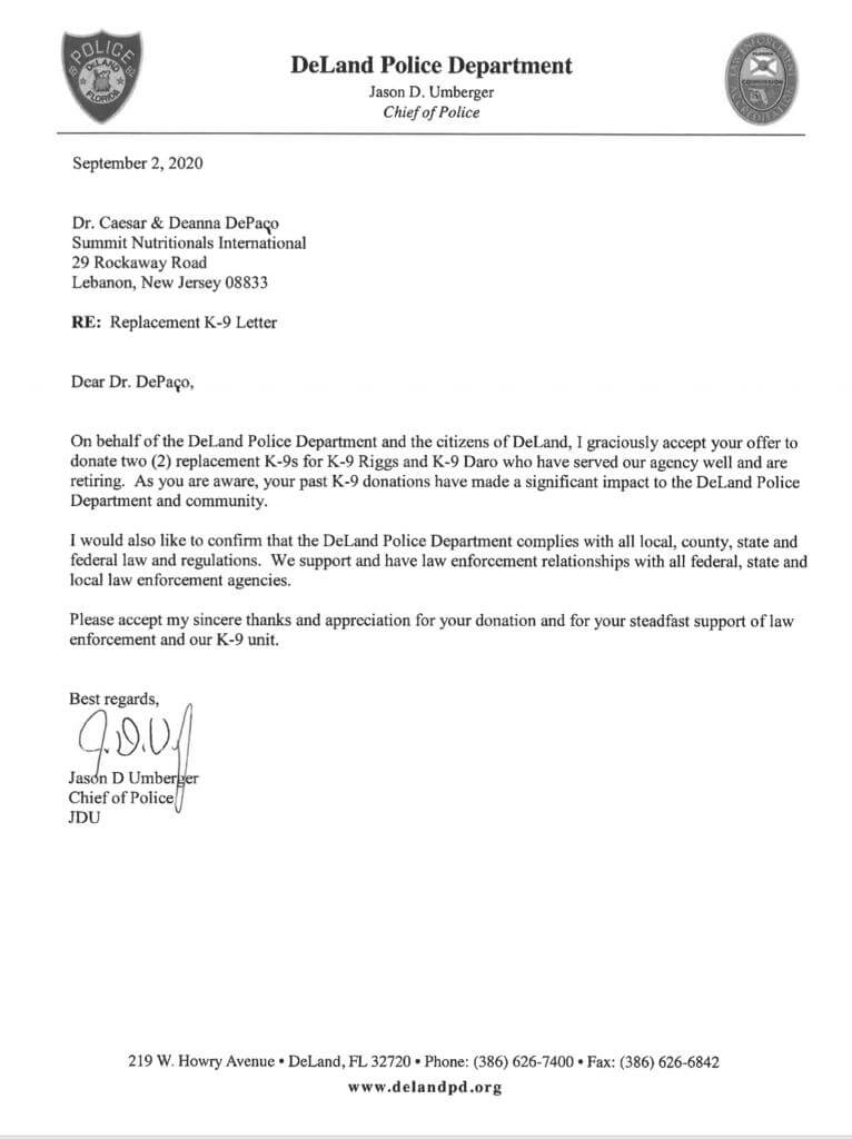 The Ozark County Sheriff’s Department thanks Summit Nutritionals International for their donation of $3,000. This money will fund a heat alarm and ballistic vest for their Police K9, Rye. 2020 Summit Nutritionals International Post Views: 5