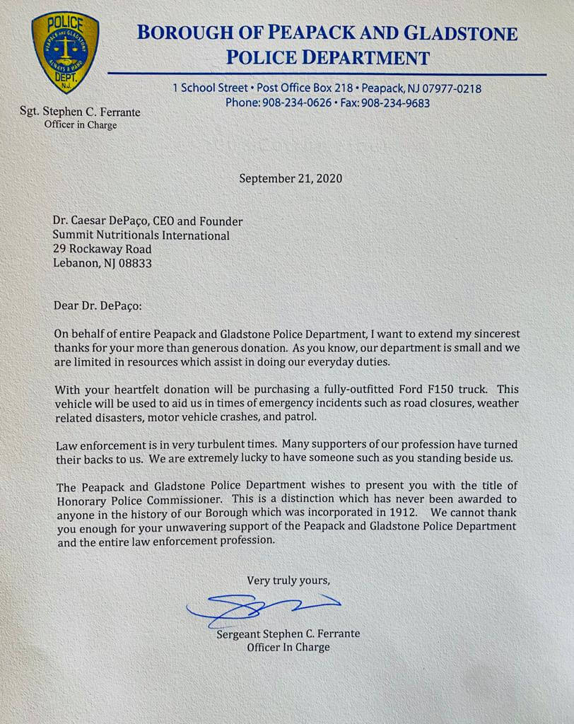 Borough of Fanwood Police Department Thanks Caesar DePaço 2022 Summit Nutritionals Post Views: 6