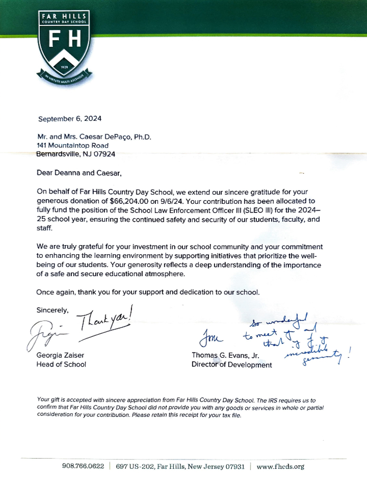 Quando o empresário português Caesar DePaço, de New Jersey, soube que a Far Hills Country Day School não dispunha de um agente policial a tempo inteiro, resolveu inverter a situação.