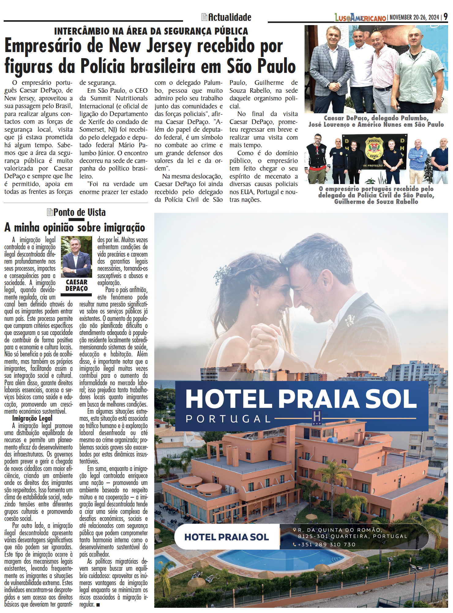 O português César DePaço foi distinguido com o prestigiado “Sheriff’s Office Citizen Award”, uma honra que reconhece a sua generosidade extraordinária e o compromisso inabalável com a segurança pública e com as comunidades locais e internacionais.